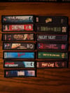 1x4 inch patches printed with spine labels of classic VHS movies. Iron-on.